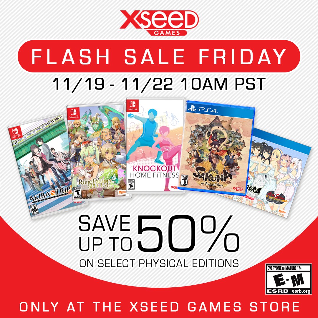 Want to save on select physical editions this holiday season? Enjoy our Flash Sale from now until Nov. 22 (10am PT) for deals on XSEED favorites: https://store.xseedgames.com/
