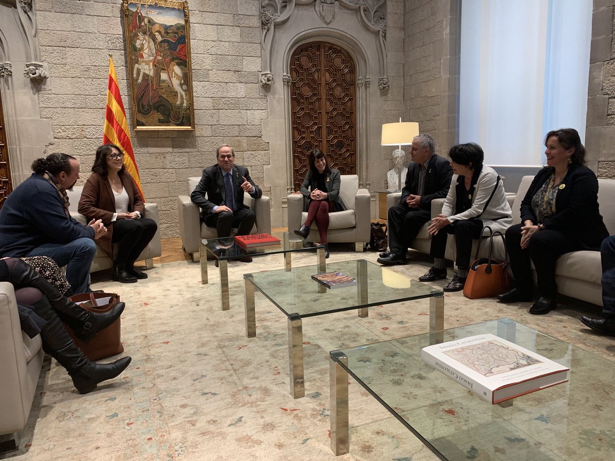 A la Generalitat avec son Président Quim Torra que l’Espagne veut destituer parce qu’une banderole demandant la libération de ses prédécesseurs était apposée sur le Palau. Espagne = dérive vers un État autoritaire et anti-démocratique. L’Europe doit réagir.