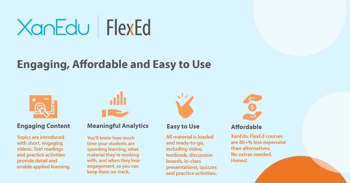 #student#learning outcomes through high-quality#OER solutions. Learn how we do it with our engaging, affordable and easy-to-use digital#courseware. https://www.xanedu.com/higher-education/solutions/flexed …#campus#edtech#higheredpic.twitter.com/Vz16KLMYiu