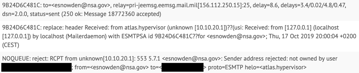 #mailcow server, think about@Snowden for some reason, use a bogus address with his name to see if the server prevents From forgery, and end up sending a bounce email to the NSA because your relay configuration wasn't finished yet. I'm a genius!pic.twitter.com/GESuugZ87F