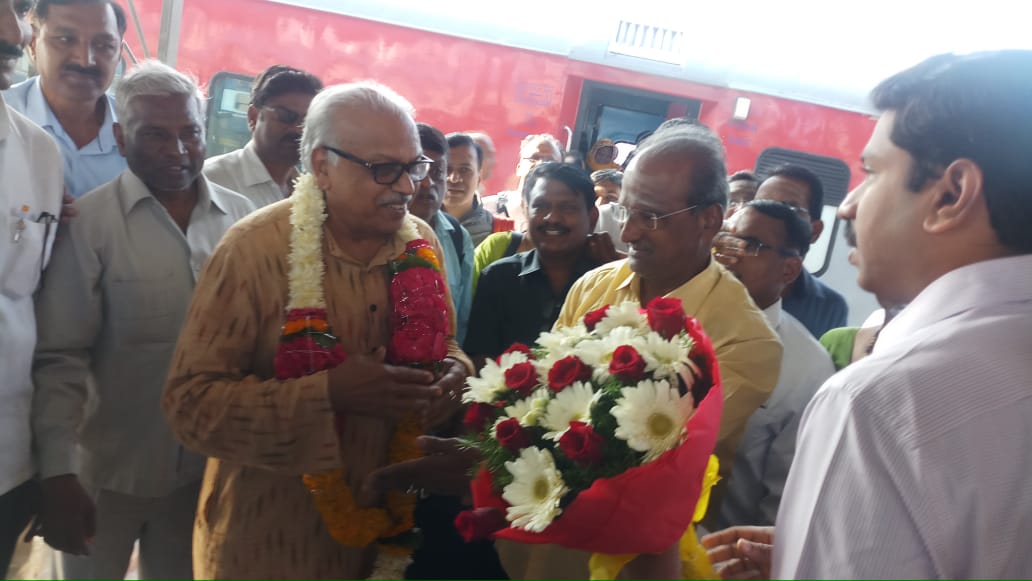 SahityaSammelana with TNIE sSarvadyaksha of Akhil Bharat Kannada Sahitya Sammelana H S Venkateshmurthy was given warm welcome after hus arrival to Kalaburagi on Tuesday a day prior to the commencement of Sammelana.pic.twitter.com/BvdzoDisJq