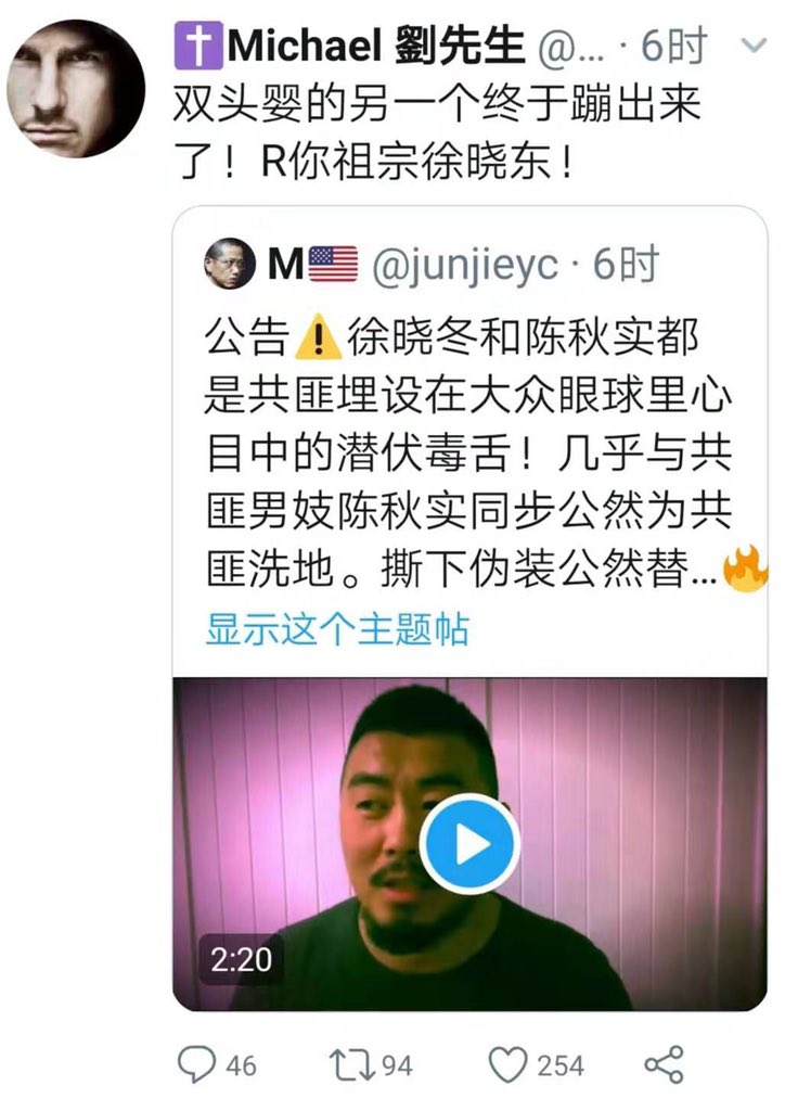 今天是周二,晚上因为秋实北京时间22点直播,所以徐晓冬今晚21点直播。徐晓冬的直播内容简单粗暴,今晚内容:卡丽熙臭傻逼!不可能和解!它有多少后台与我无关!我就一个宗旨!诬陷我和秋实的傻逼死全家!2:报道现在老百姓的真实说过状况!pic.twitter.com/0i4soG9mpR