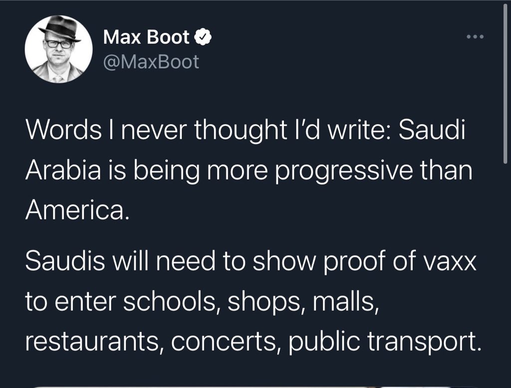 You know the left has gone crazy when they’re aiming to be more like Saudi Arabia. The same country that you can get arrested for: celebrating your birthday, taking pictures of buildings, and doing the dab. Oh, let’s also not forget women can’t drive or compete freely in sports.https://twitter.com/kenklippenstein/status/1420503264924155905 …