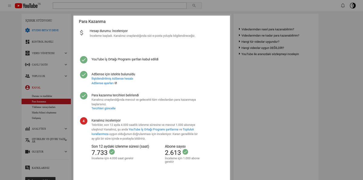 I've exceeded 4000 hours of viewing and 1000 subscribers, and I want to open the money making section in a short time. I would supply the need...