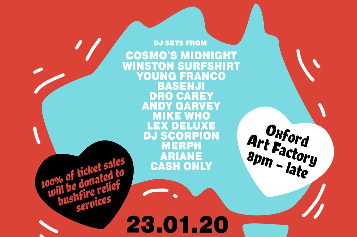 @CosmosMidnight@WNSTNSRFSHRT@YNGFRNCO@officialbasenji & more are teaming up for Sweet Relief. More deets in our Bushfire Benefit gig guide https://ab.co/35Awd6L pic.twitter.com/3RslfFrIDX