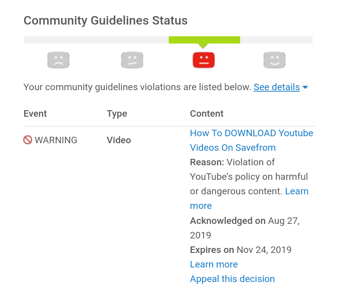 Watch out guys, YouTube's back to give us false community guideline strikes again. This happened around the same time last year. This is the third tutorial of mine that got taken down for "harmful or dangerous acts" but it seems all of my videos are just "harmful" to YouTube.pic.twitter.com/F2RrVcXoT9