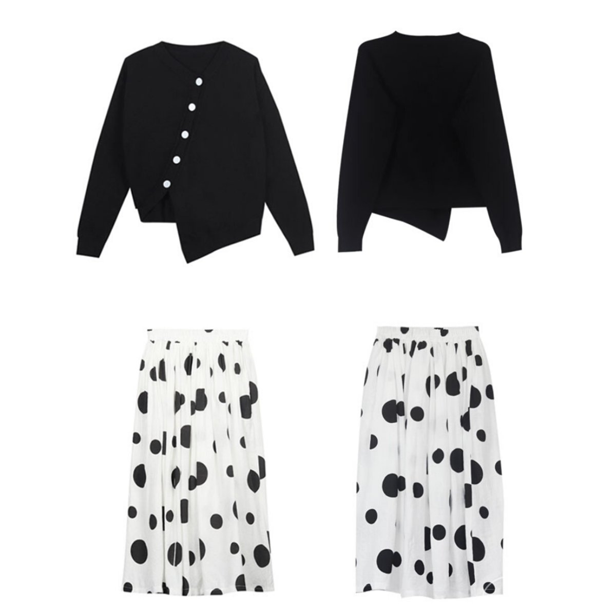 アシンメトリーニット&ドットスカートセットアップ ¥4,980
