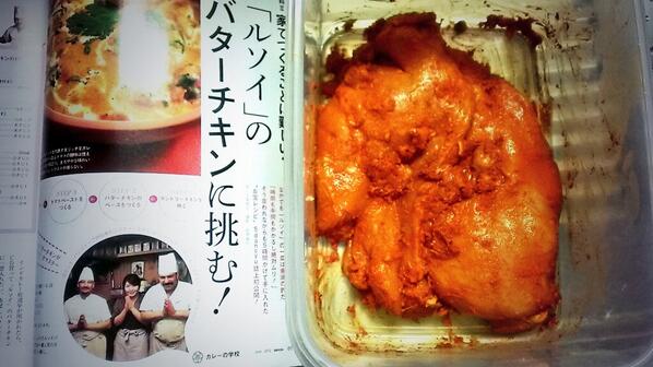 目黒時代に何度か通ったカレー店「ルソイ」のレシピが手に入ったので実践! バターチキンを作るぜ。 まずはタンドリーチキンの下ごしらえ。 このまま明日の昼まで放置! ※レシピは「dancyu 6月号」に掲載されとります。pic.twitter.com/gF3OPSbhsU