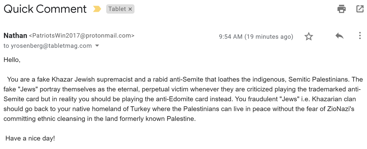 In retrospect, arguing on Twitter w/ a guy whose bio was "spreading awareness about Jewish supremacism" was not a productive use of my time