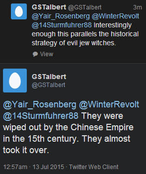 I learn new things on Twitter every day. Today a neo-Nazi educated me about "evil Jew witches" in 15th century China:pic.twitter.com/jSdQnGpEnR
