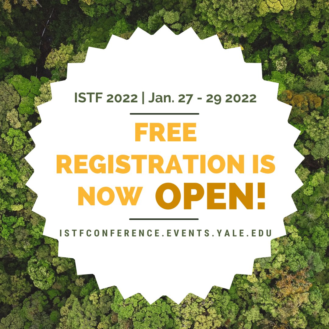 The ISTF 2022 hybrid conference “Rethinking Restoration and Recovery: Landscapes of the Past, Present, and Future in the Tropics” will take place on January 27 - 29th, 2022. The conference will be free to attend and registration is now live on our website https://istfconference.events.yale.edu/ pic.twitter.com/l6vxAbYCZE