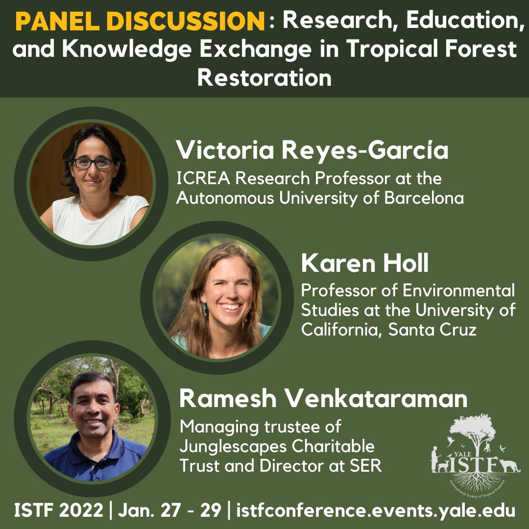 @uabbarcelona, Karen Holl (@KDHoll5) from@ucsc, and Ramesh Venkataraman from@Junglescapes and@SERestoration. For full agenda and registration go to http://istfconference.events.yale.edu/ pic.twitter.com/2pSHFutdP3