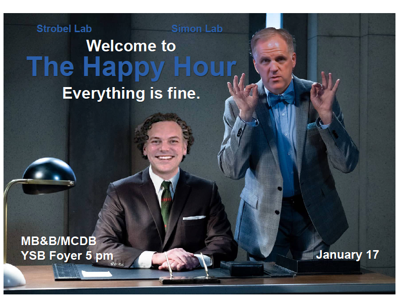 Join the Strobel and Simon lab in the YSB foyer January 17th at 5PM for the MB&B/MCDB happy hour!pic.twitter.com/Q9CZx0TKeD