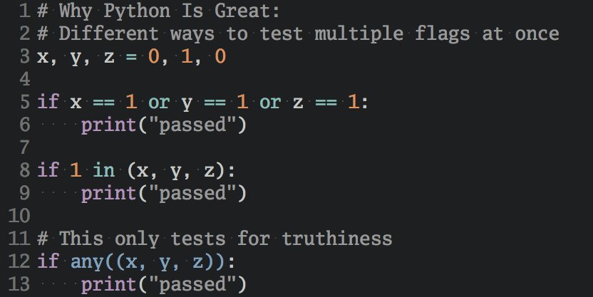 Different ways to test multiple flags at once in Python (Get the whole series: https://dbader.org/python-tricks )pic.twitter.com/l7wWMiAAq6
