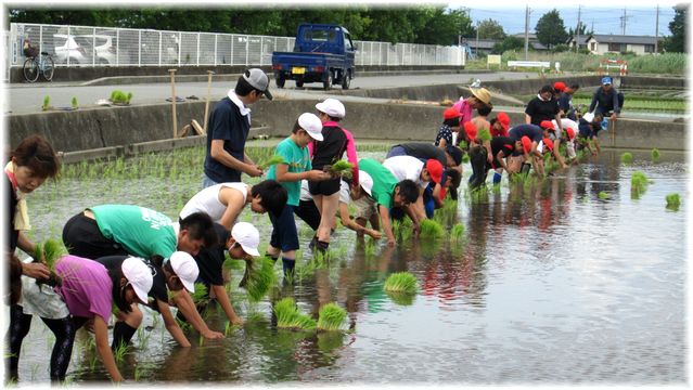 【南甲府署から】田富南小学校で交通事故防止を願って田植えを実施