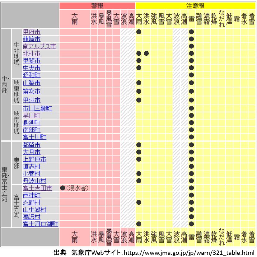 【大雨警報】甲府地方気象台午後1時46分発表
