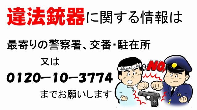 【拳銃等違法銃器の根絶】違法銃器に関する情報を警察にお寄せください▶もしご家庭で旧軍用拳銃等を発見した場合には、届け出ることで処罰されることはありませんので速やかにご連絡ください▶銃器犯罪のない安全・安心な社会を築くためにご協力をお願いします◀pic.twitter.com/xHZgzn68ss