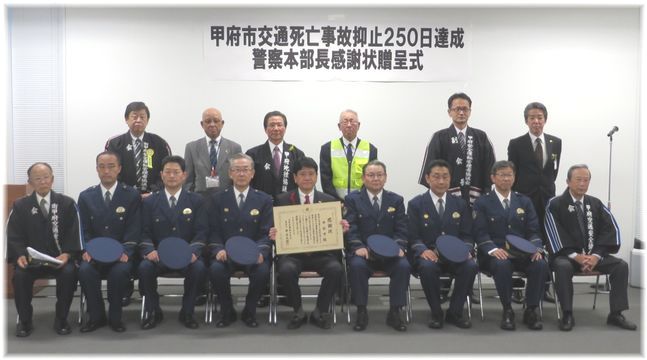 【死亡事故ゼロ250日】10月31日、甲府市が「交通死亡事故抑止250日」を達成!