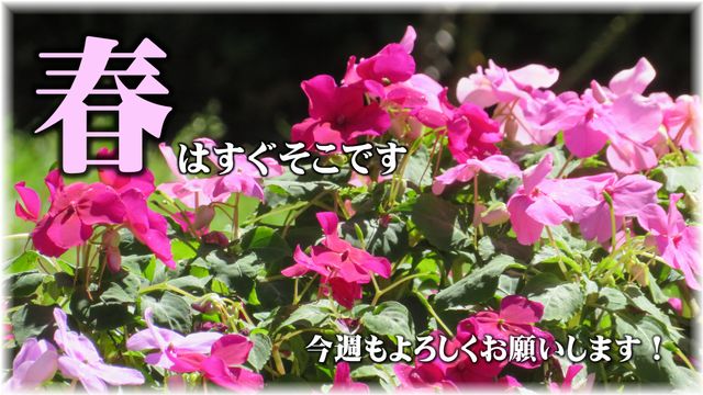 ▽週末は雪にならずよかったですね▽今週一週間は寒いようですが、来週から暖かくなる予報▽春はすぐそこです!