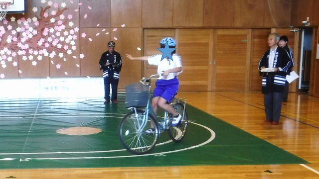 県大会と同様に学科テスト及び実技の合計点で競い、大会を通じて交通安全を学びました