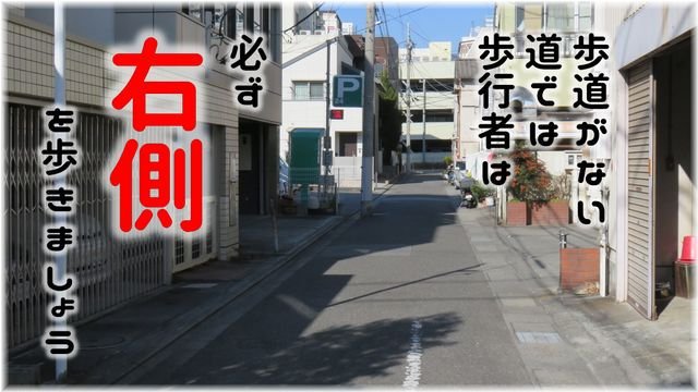 歩道のない道路では、歩行者は必ず道路の右側を歩きましょう