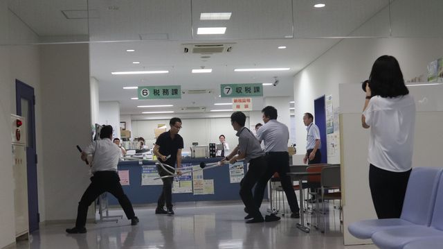 笛吹市役所で、凶器を持った不審者への対応訓練を実施