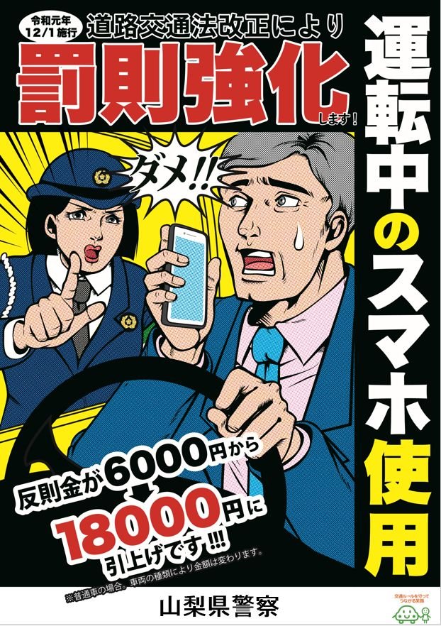 12月1日に運転中の携帯電話等の使用に関する罰則の強化を含む改正道路交通法が施行されます