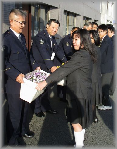 【パンジー大切にします】甲府南高校の生徒さんが、南甲府警察署にパンジーを届けてくれました