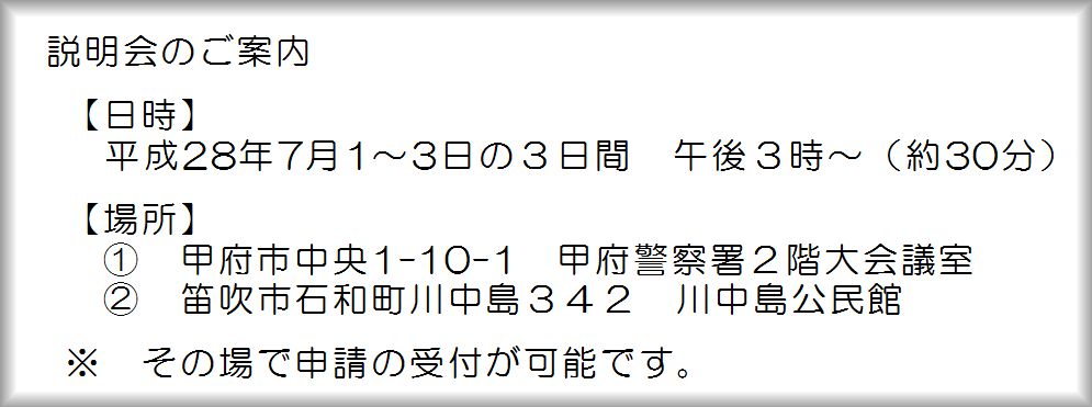 明日から3日間甲府警察署と川中島公民館で説明会を開催