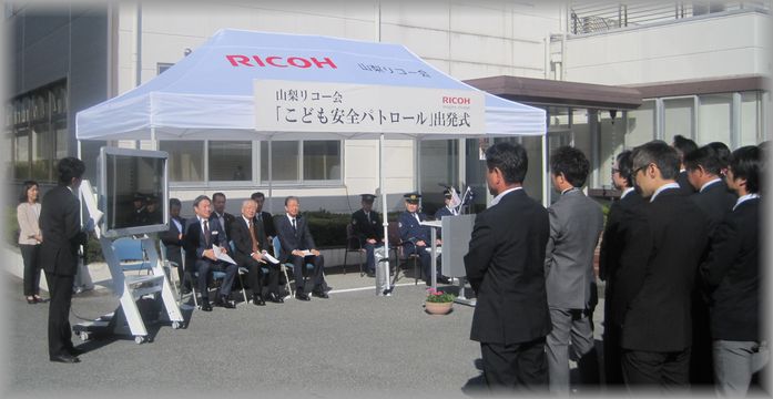 【社会貢献】山梨リコー会(丸茂紀彦会長)は、平成18年以降会員各社の車両に『こども安心パトロール』のシールを貼って走行し、子どもの見守り活動を続けてきました