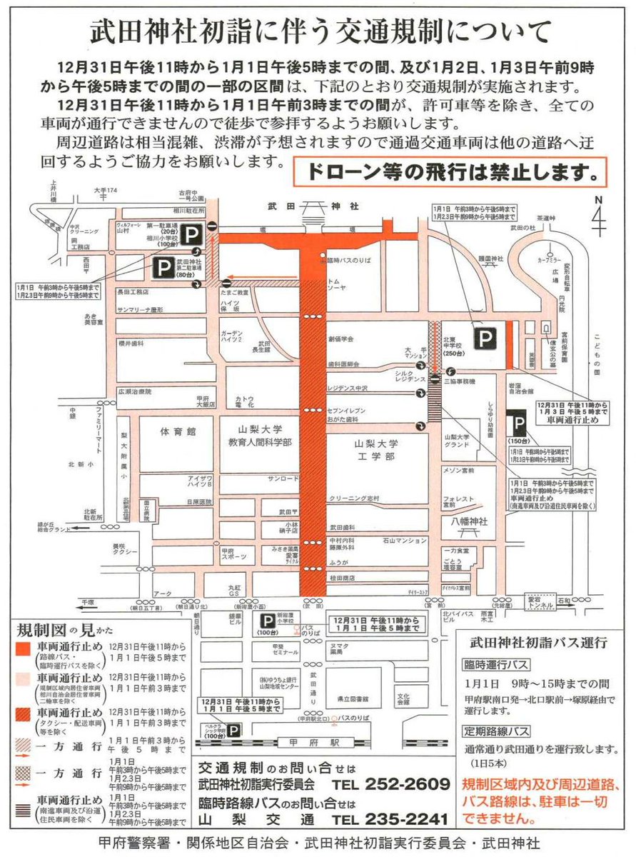 12月31日から1月3日まで武田神社周辺は交通規制が行われます