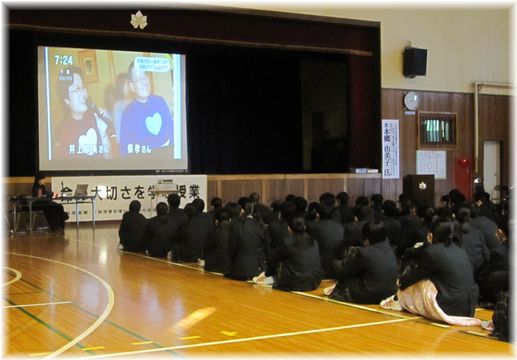 小学2年生の娘さんを事件で亡くされたご遺族の体験を聞き、生徒から『「ただいま」と言えることは幸せで、大切な言葉だと感じました』という感想が聞かれました