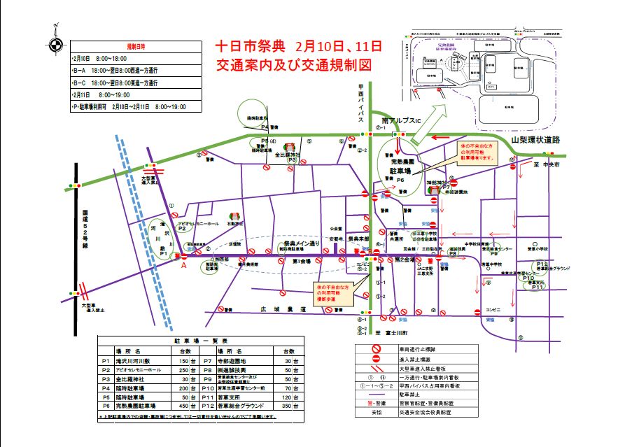 混雑が予想されますので、規制区間や駐車場を確認し、時間に余裕を持ってお出掛けください
