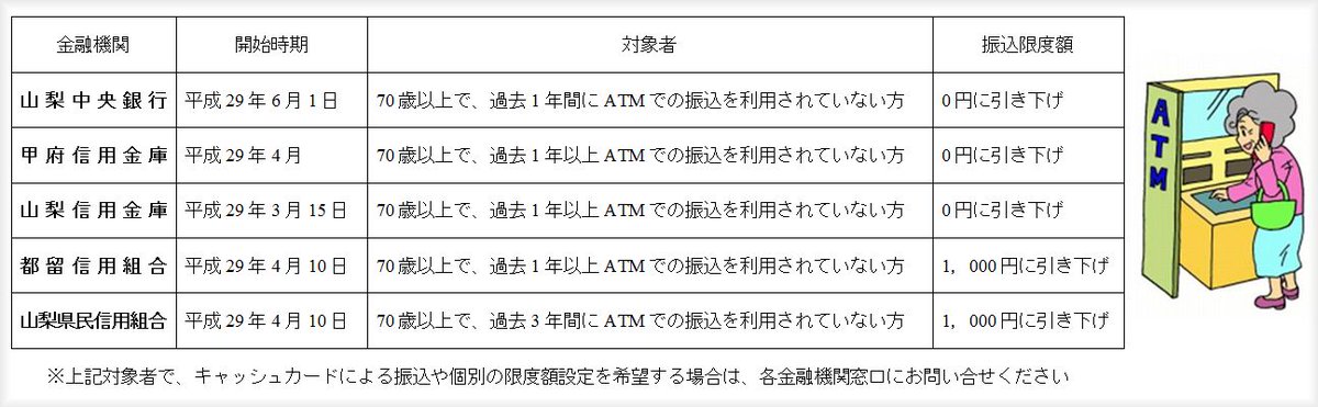 【STOP電話詐欺!】電話詐欺被害を未然に防止するため、県内の金融機関で、キャッシュカードによる振込限度額を「0円」等に引き下げる対策が導入されます