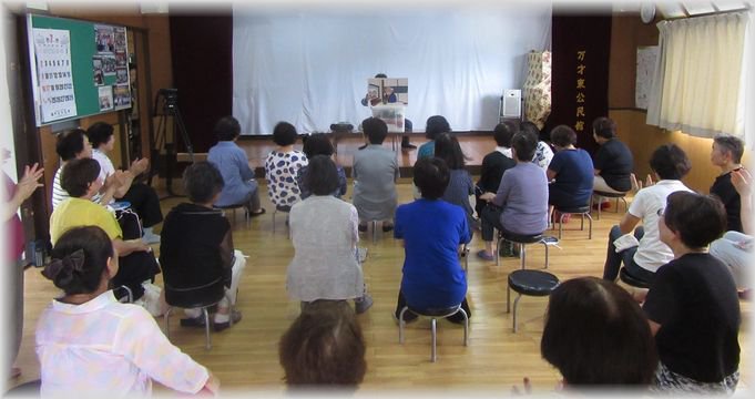 紙芝居隊の紙芝居も公演し、「私はだまされない」と考えている人が、簡単に電話詐欺にだまされてしまうことを地域の高齢者にお伝えしました