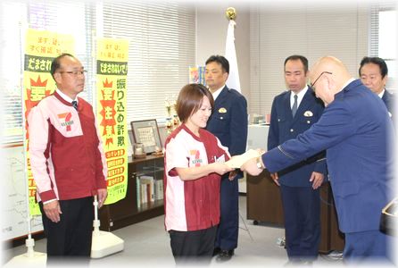 【南アルプス署から】セブンイレブン南アルプス小笠原店に感謝状