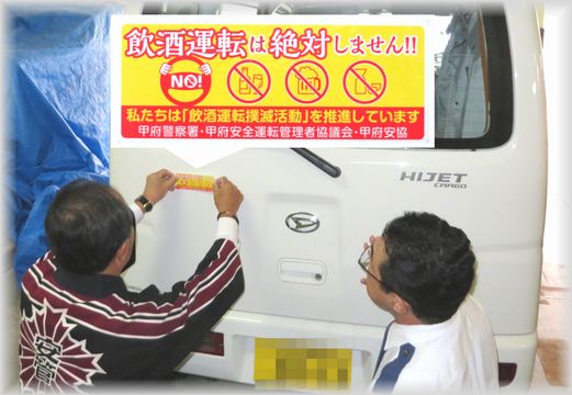 【甲府署から】甲府安全運転管理者協議会が、『飲酒運転は絶対しません!!』ステッカーを作成し、加盟事業所に配布しました