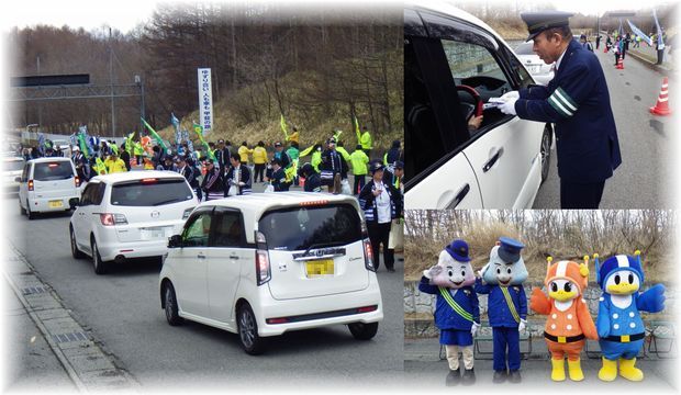 【交通安全の呼び掛け】北杜署は、国道20号で長野県警茅野署と、国道141号で長野県警佐久署と合同で街頭指導を行いました