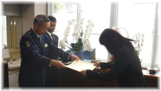 【上野原署から】都留信用組合本店営業部の古屋さんに感謝状を贈呈
