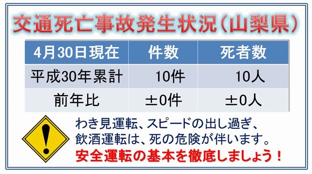 【交通死亡事故発生】昨日(4月30日)、笛吹市の国道137号で、原動機付自転車と普通乗用車が衝突
