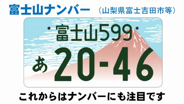 ▽山梨は富士山ナンバーで赤富士の図柄▽交付は10月頃の予定です▽今後はナンバーも注目ですね▽でも運転はしっかり前を見て安全運転で!▽では、今日もよろしく!