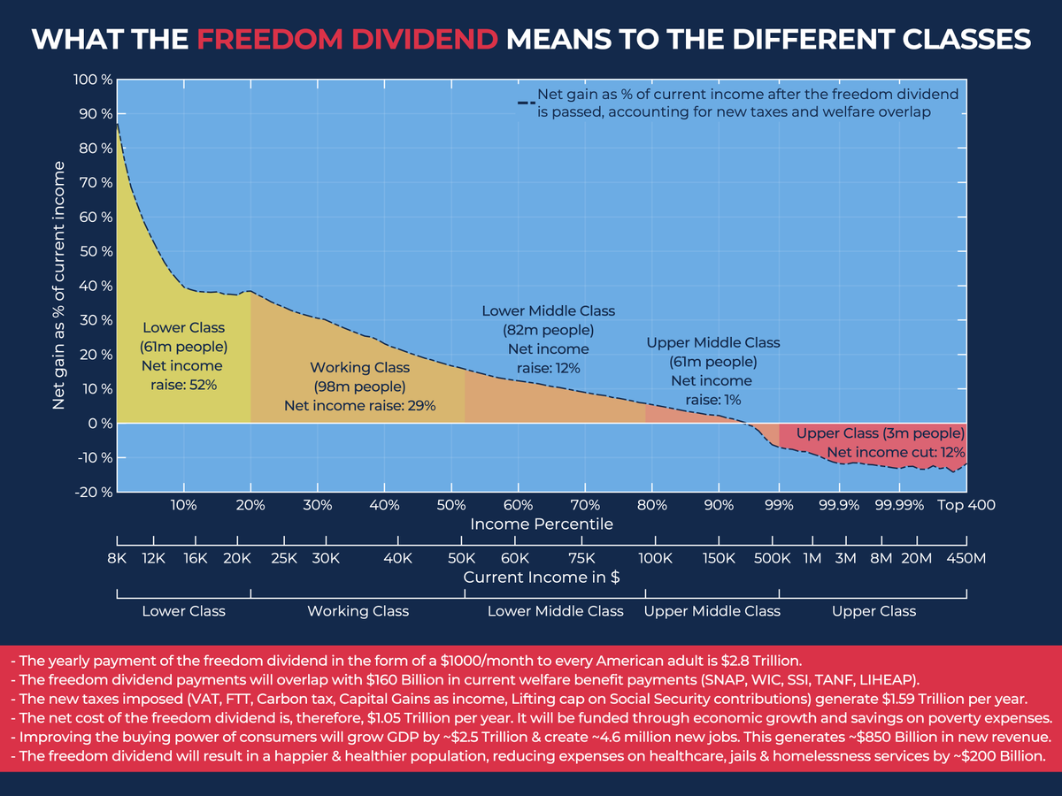 Hey @AnaKasparian, the freedom dividend would be an effective raise of 52% to the average person in the lower class, and 29% to the average person in the working class. Not significant enough? #YangWillWinpic.twitter.com/PsgWK2PxY1
