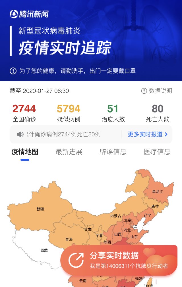 Infected cases:2744,suspected cases:5794, deaths:80, cured: 51. Cases are poised to reach 10,000pic.twitter.com/kp52l3zzZ3