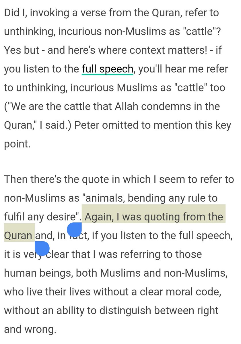 Did you see his ridiculous nonpology about this? Essentially his defence is that he was only quoting the Quran. And so according to Hasan; positively quoting a book that describes disbelievers as animals is reasonable, but criticising such a book is hate speech.pic.twitter.com/pkV1vdjOZN