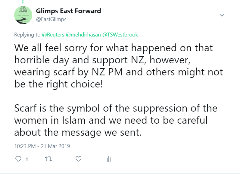 This was my tweet about NZ PM wearing hijab, when everyone was so emotional that it was hard even to be remotely reasonable!pic.twitter.com/53prUhRow6