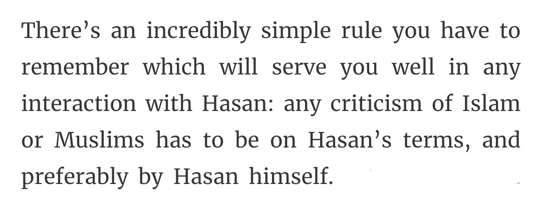 Hasan affords himself the right to say things he stridently criticises in others. It's a tactics he's used for years. This from