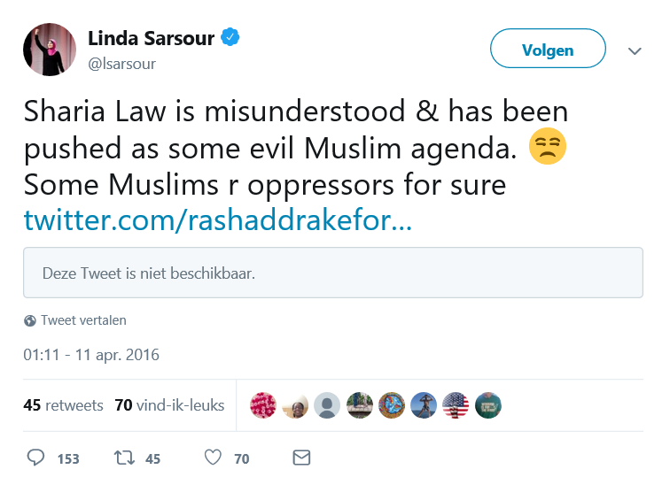 She's also an advocate for Sharia law, says it is "misunderstood". Look at Iran, Pakistan and SA and I do not need to explain more about Sharia lawpic.twitter.com/42THmAwlf1
