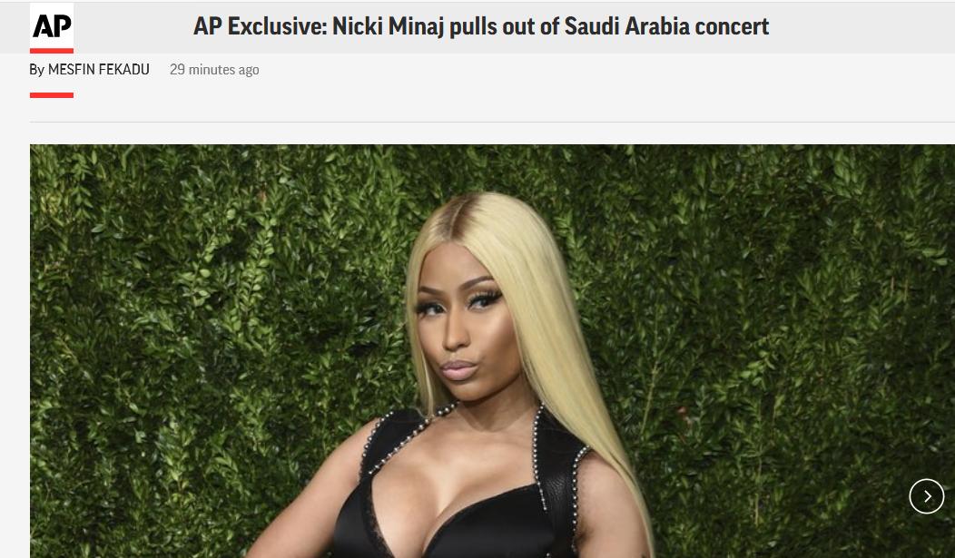 I honestly had no hope that she’d do this 😭IM SO HAPPY! What a huge statement! What a great slap in the face to the misogyny and gender apartheid in Saudi Arabia!! 🙌🙌🙌 They honestly believe we can all be bought, I’m so glad @NICKIMINAJ has proved them wrong ❤️❤️❤️