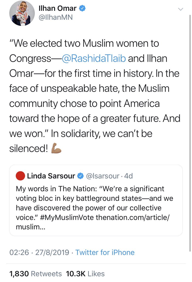 @Ayaan Yas and@Asra Nomani the team @@WoMenFightAS champion those Ilhan is content to forget.2 replies 2 retweets 21 likes -