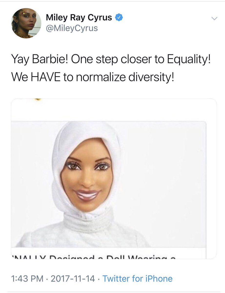 Western celebrities like @MileyCyrus use their power and influence to support their OWN freedom & the freedom of other women in the West And they use that same power and influence to support the misogyny & subjugation of OTHER women It’s heartbreaking hypocrisy #FreeFromHijabpic.twitter.com/6VISYYVbCG